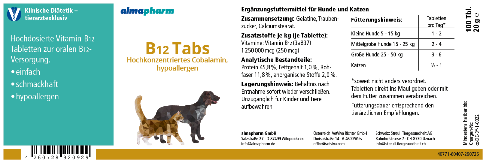 Ergänzungsfuttermittel für Hunde und Katzen. Hochkonzentriertes Cobalamin, hypoallergen. Für weitere Informationen zu analytischen Bestandteilen, Zusatzstoffen, Zusammensetzungen und Fütterungshinweisen siehe Etikett.