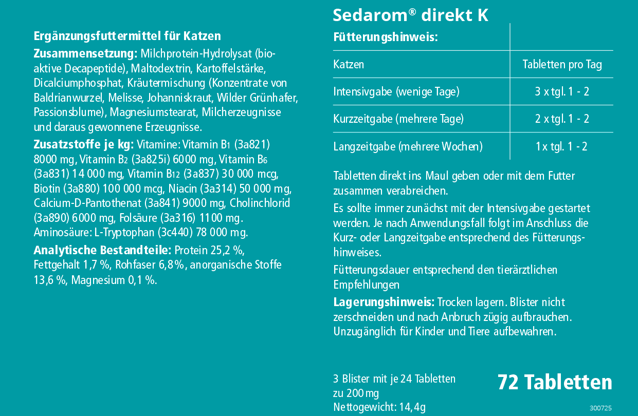 Ergänzungsfuttermittel für Katzen. Rasch verfügbare Nervennahrung. Für weitere Informationen zu analytischen Bestandteilen, Zusatzstoffen, Zusammensetzungen und Fütterungshinweisen siehe Etikett.